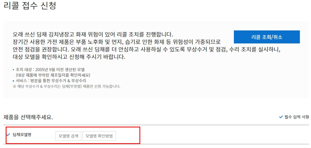 위니아 딤채 김치냉장고 리콜 신청하는 방법을 알려드려고 합니다.